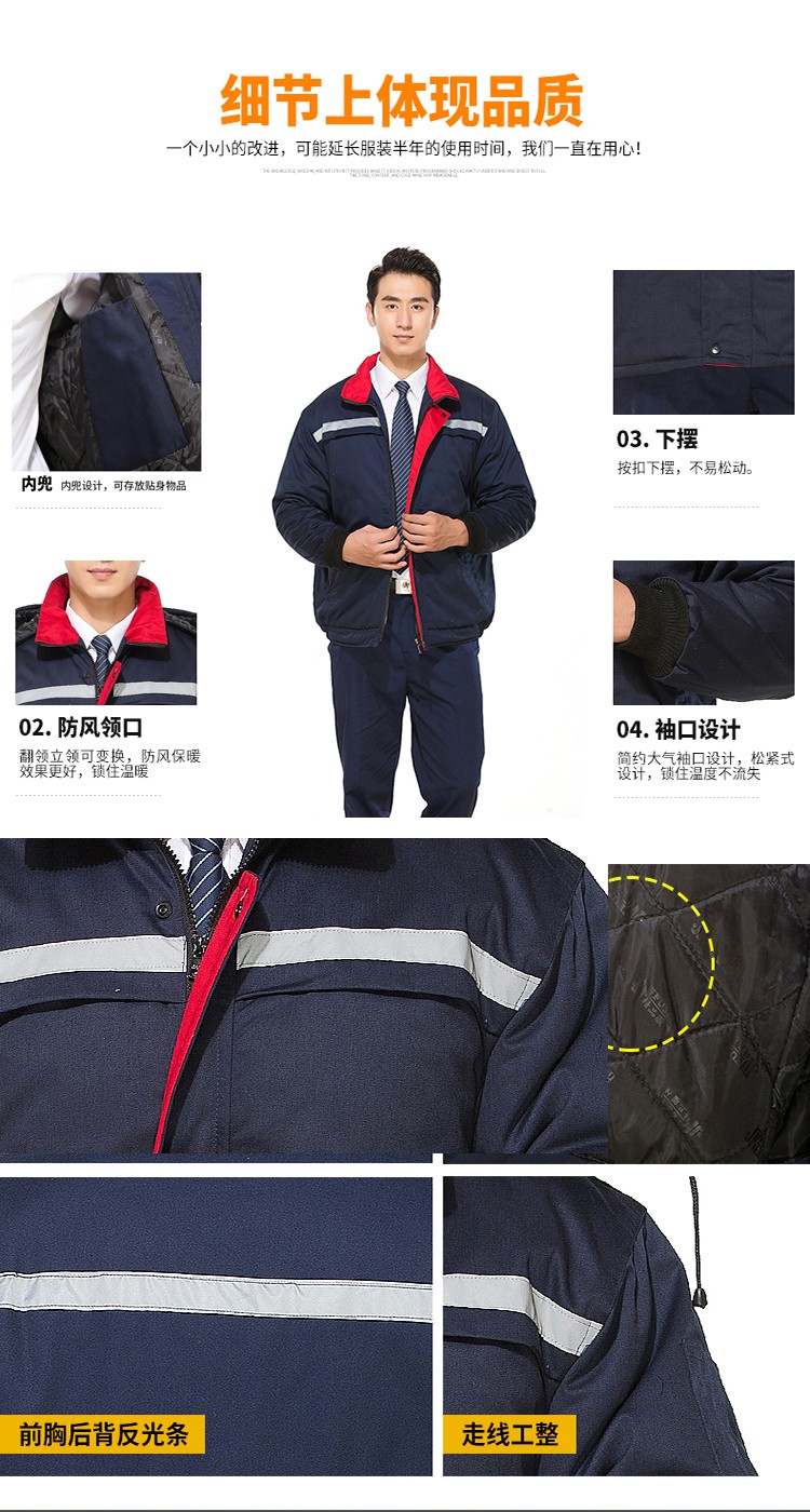 冬季棉服夾克工作服定做,適合多行業(yè)冬季工裝解決方案,提供中長(zhǎng)款和短款?yuàn)A克棉服工作服。戶外,室內(nèi)作業(yè),均可滿足。