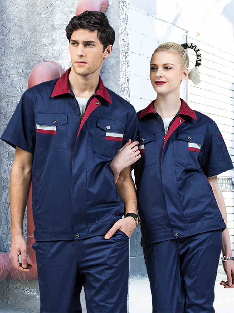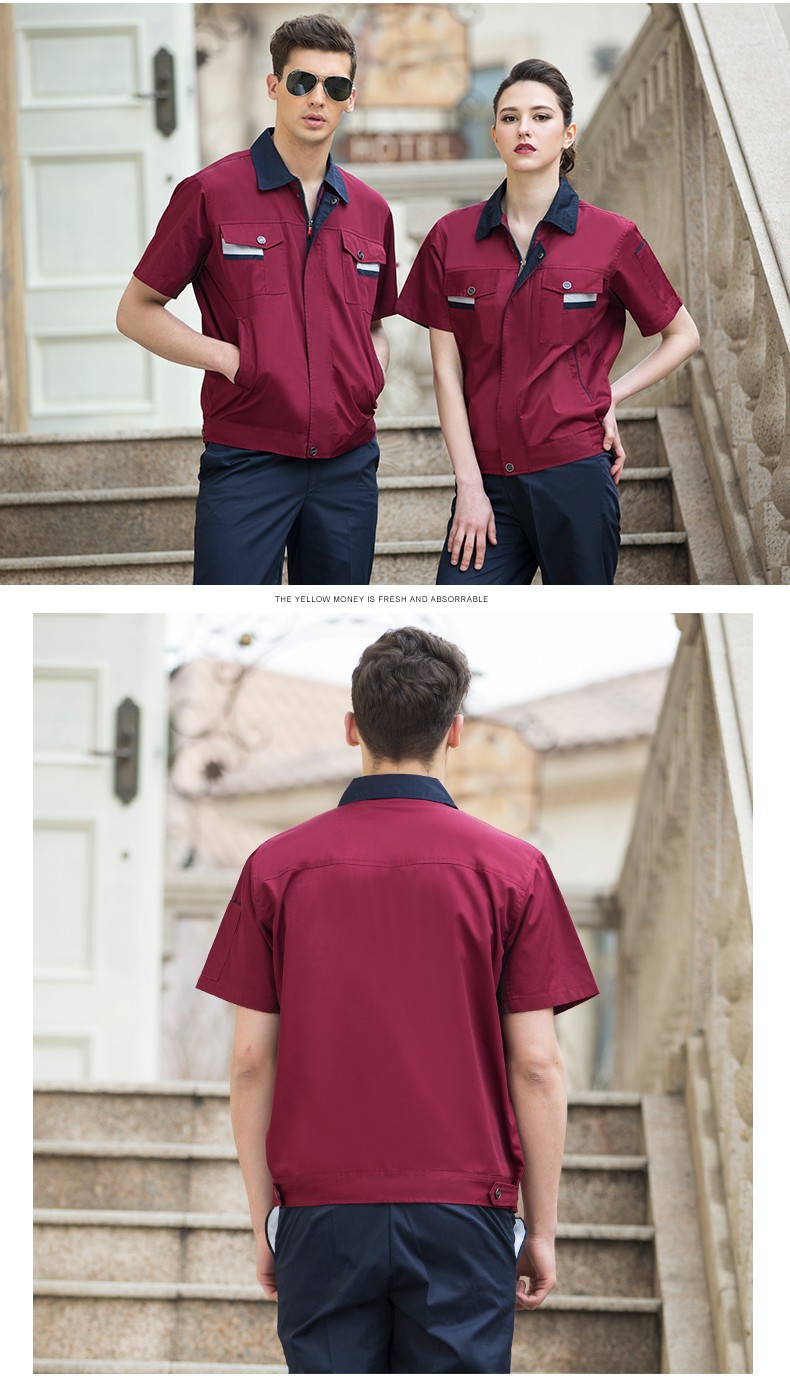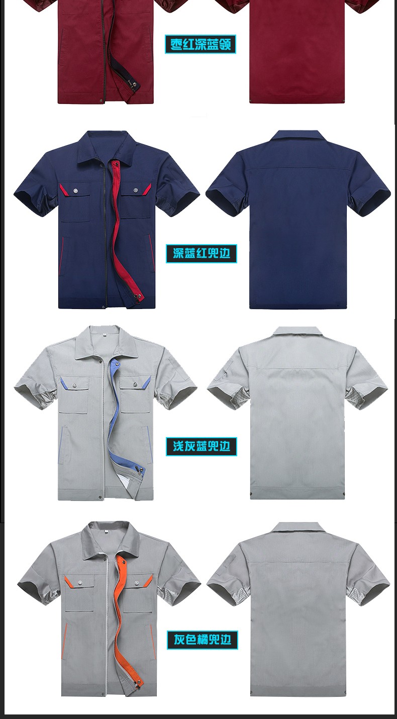 藏藍棗紅領(lǐng)夏季工作服工衣