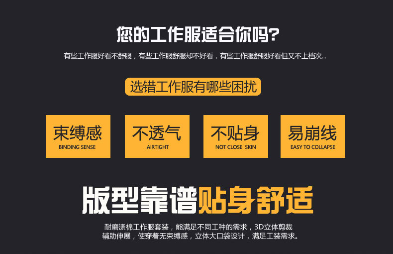 您的工作服適合你嗎?有些工作服好看不舒服,有些工作服舒服但不好看,有些工作服舒服好看但又不上檔次,選錯工作服有哪些困擾?束縛感,不透氣,不貼身,易崩線。
